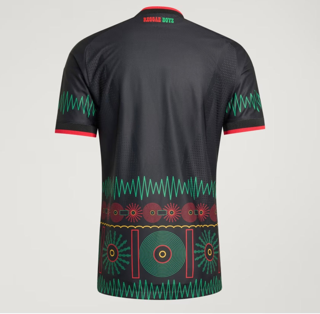 La camiseta Jamaica cuenta con tela altamente ventilada para ayudar a eliminar el sudor de la piel mientras animas a tu equipo.